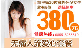 1、普通的人流手术,适应于经济能力相对较差的女性,手术费低至580元。···【详情】
